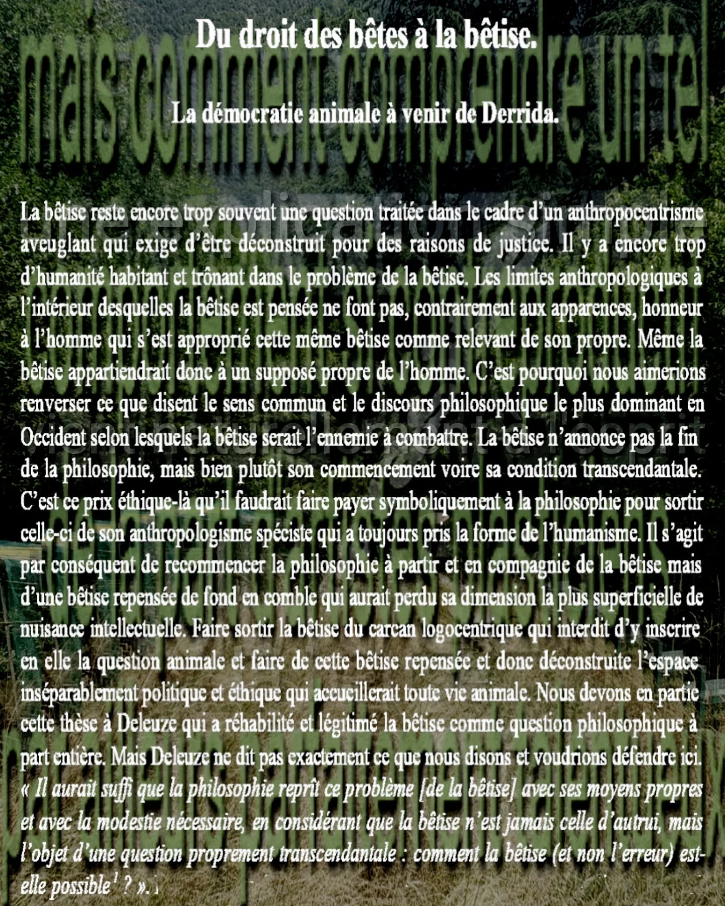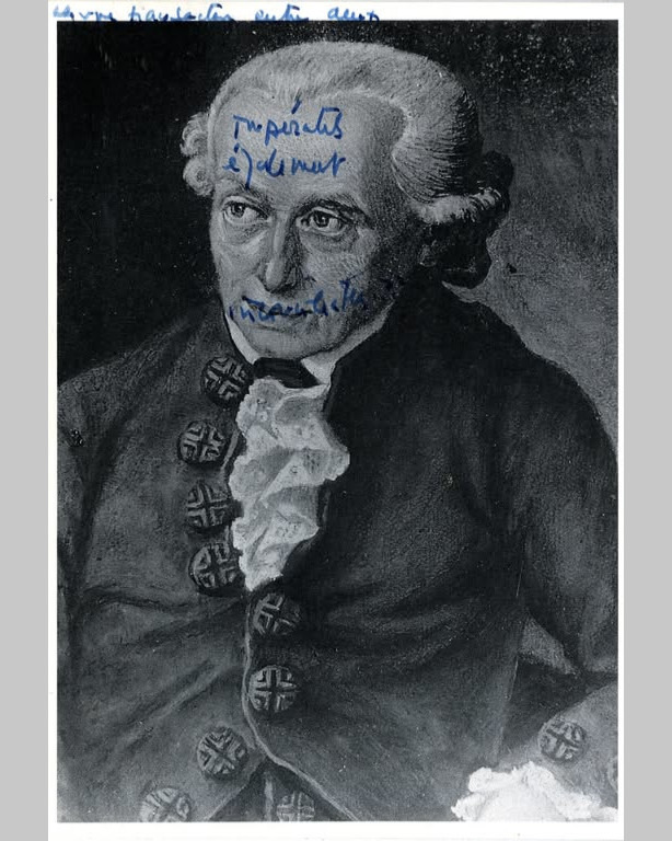 Derrida a pris soin, après avoir noté sur le bord en haut du cadre … "une transaction entre deux," de répartir les termes de l’antinomie : au front "impératifs également," sur les lèvres "inconciliables."