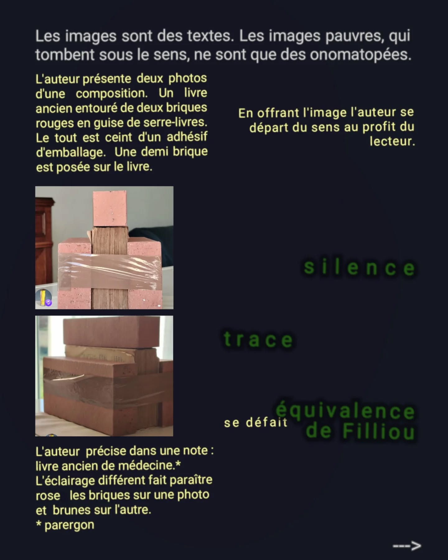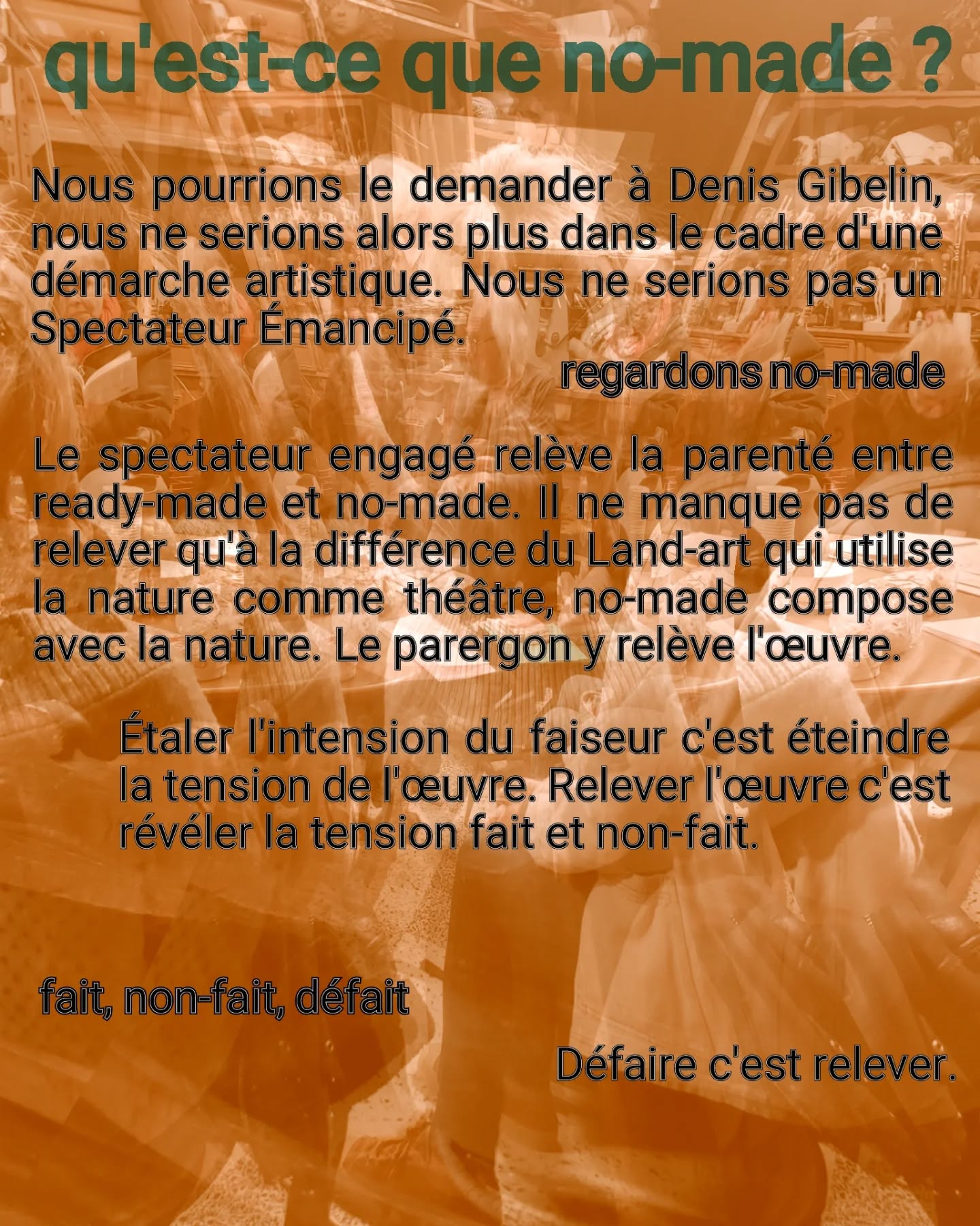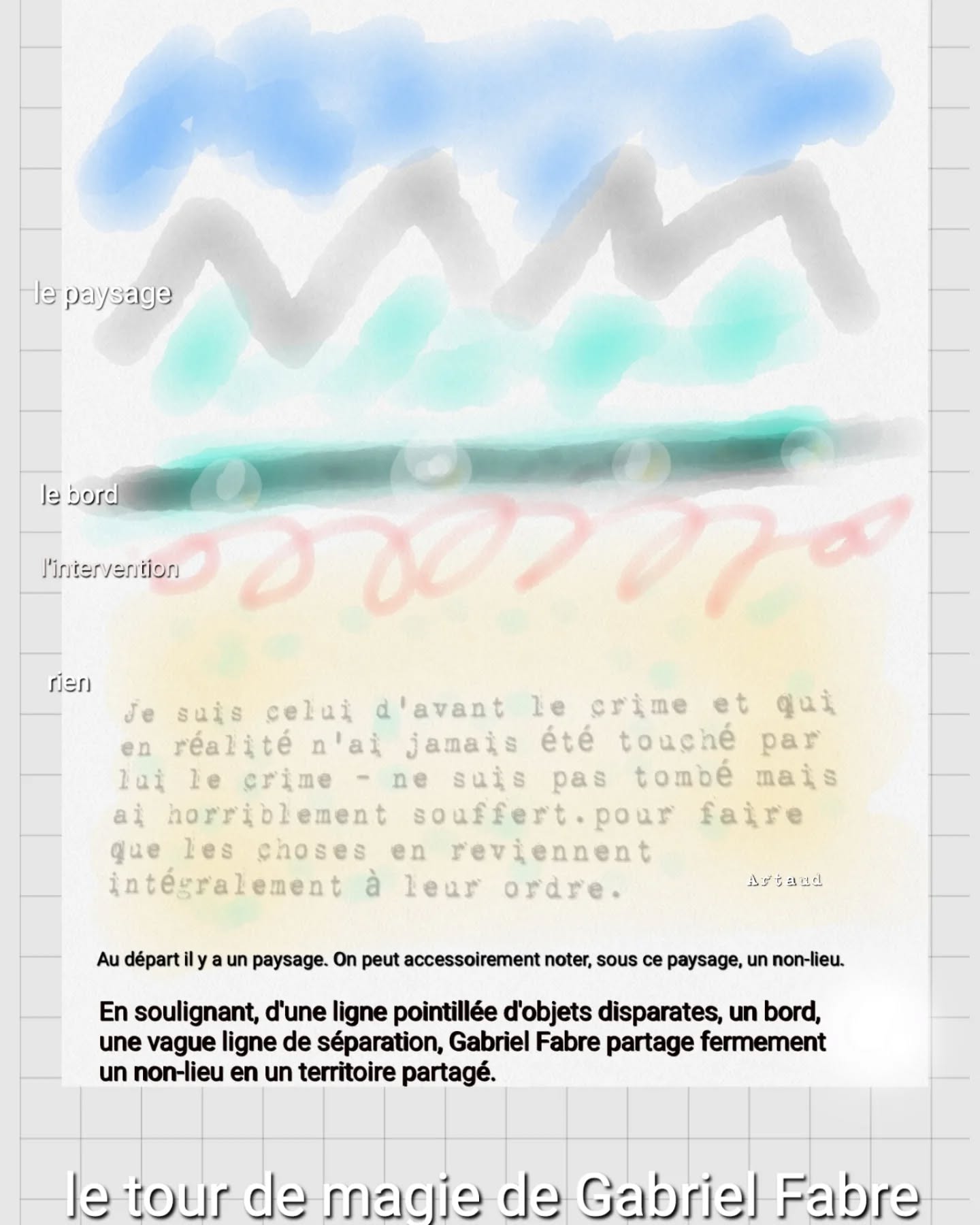 C'est le geste qui du subjectile va faire lieu. Cependant pour qu'il y ait territoire partagé, faut-il encore qu'il y ait quelque-chose à partager. Qu'il y ait déjà lieu. Si on est en présence d'un subjectile, d'un non-lieu, il ne peut y avoir partage. Ces dix photos ne présentent que des non-lieux. Et c'est le tour de force de Gabriel d'avoir fait émerger un lieu là où il n'y avait que subjectiles.