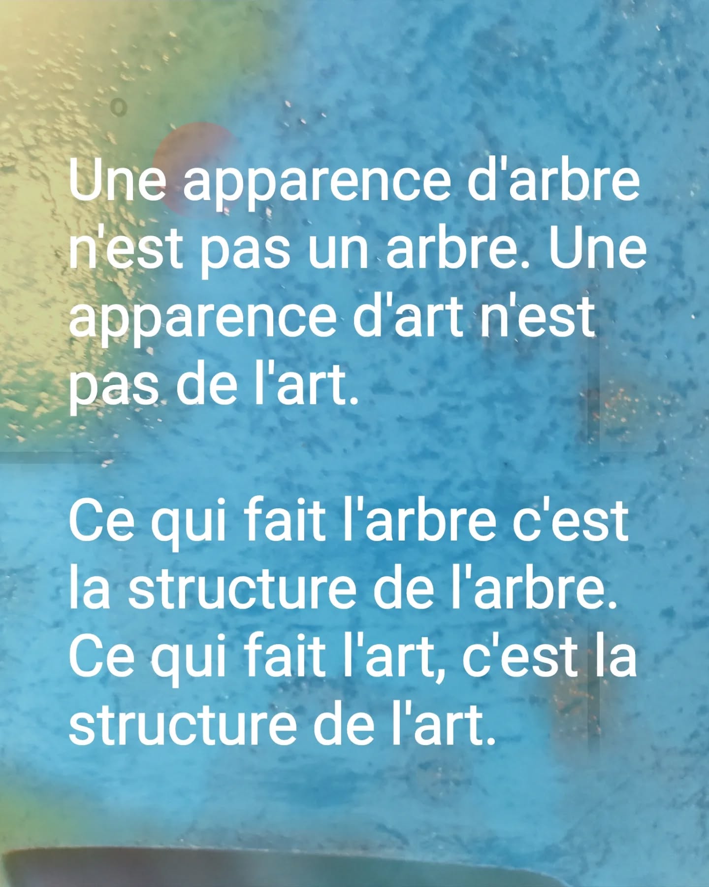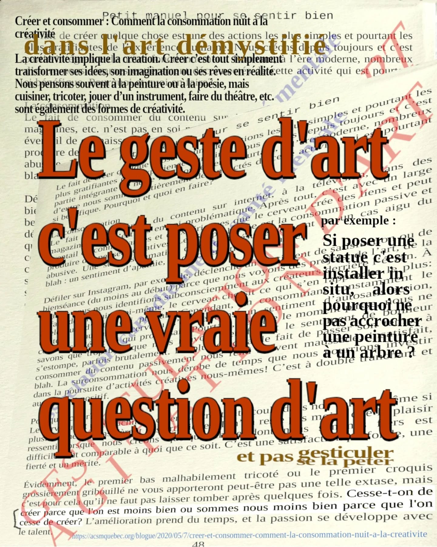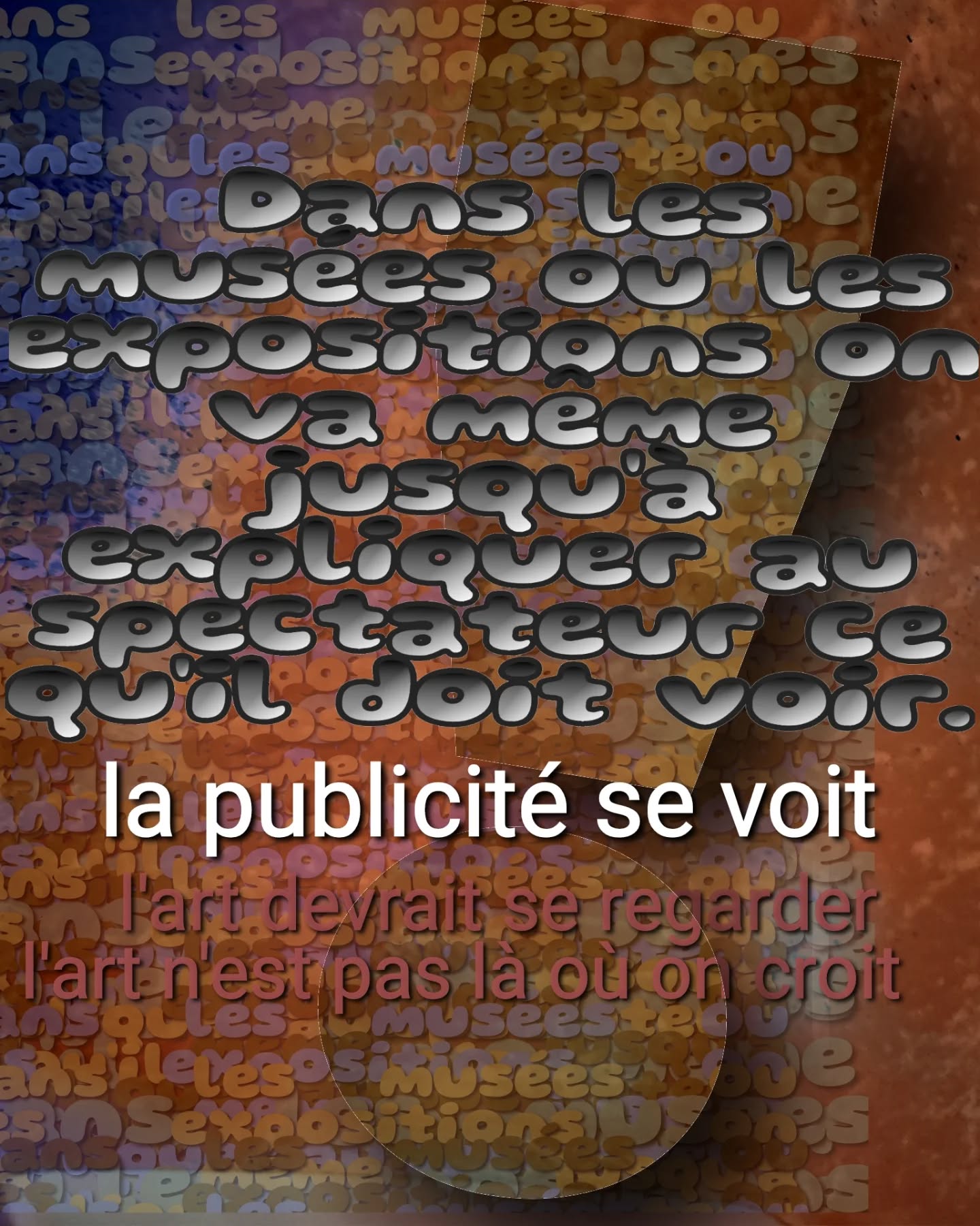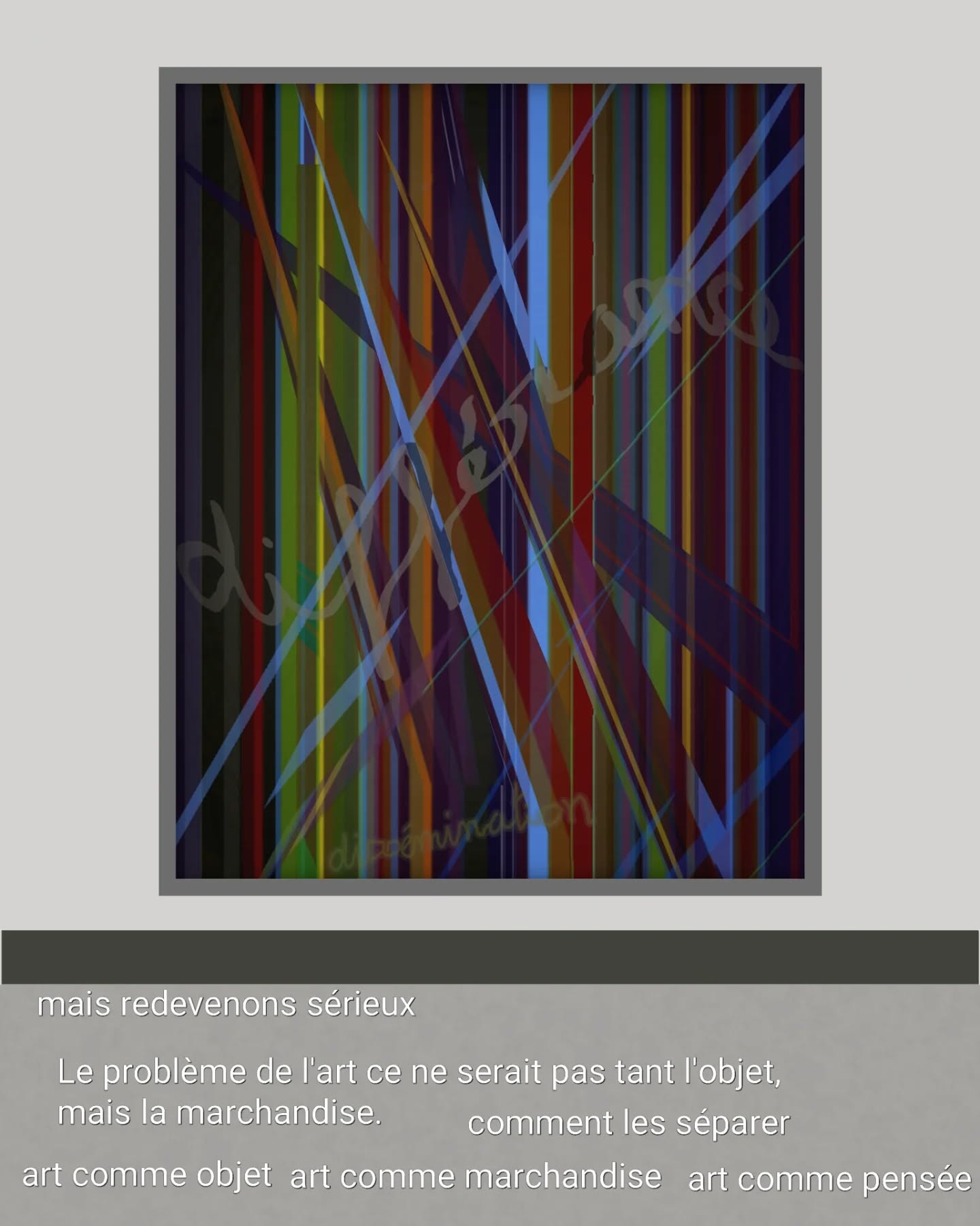 L'art aussi sait faire danser la table. Il y a les marchandises, les marchandises artistiques, et l'art non marchand. L'art (non marchand) n'a pas besoin de cadre. Un simple adhésif fait l'affaire.