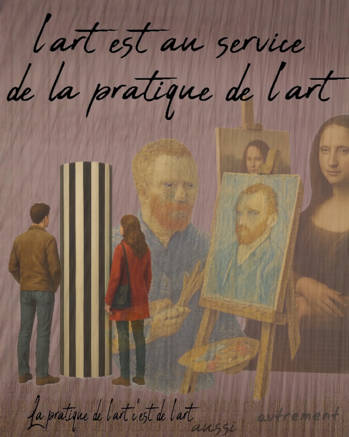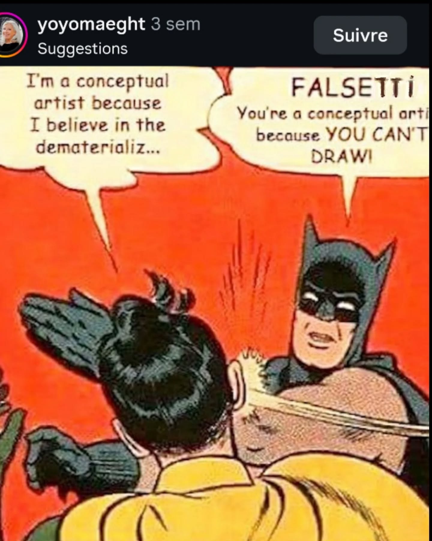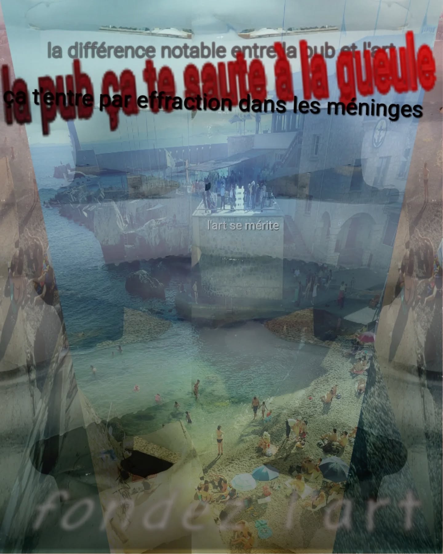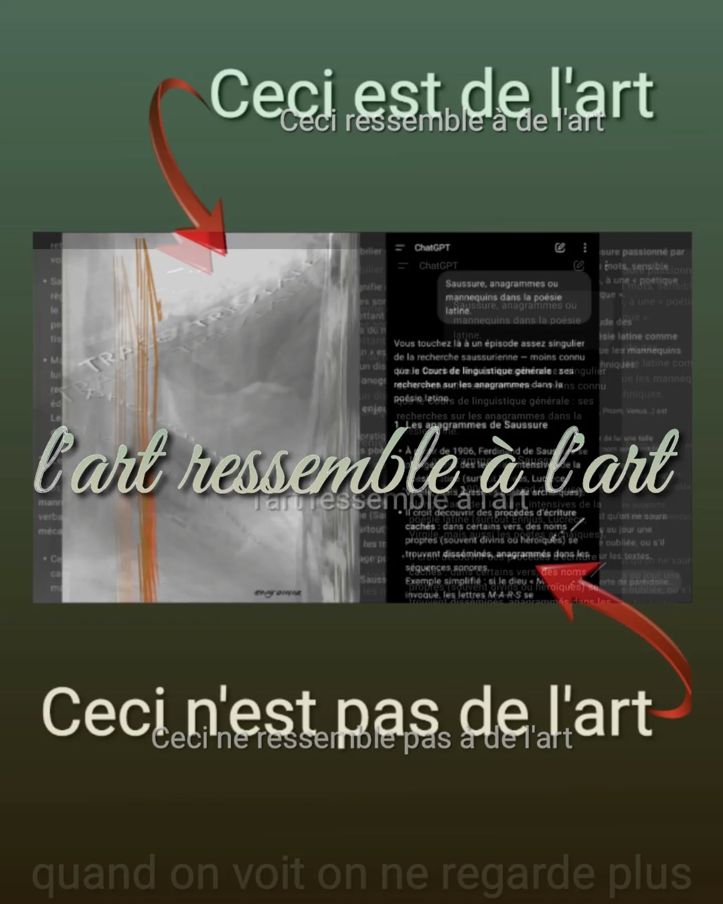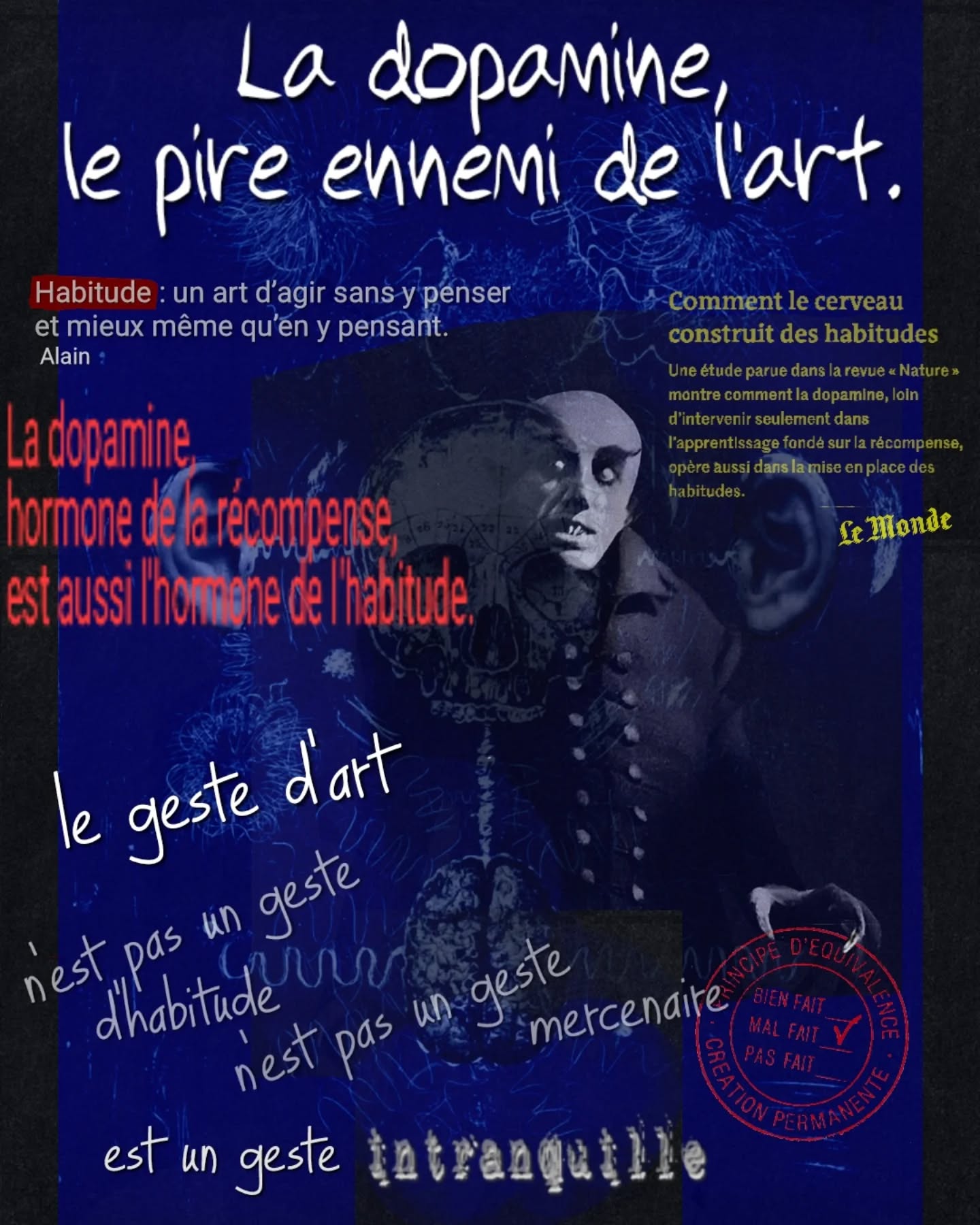 L'art aussi sait faire danser la table. Il y a les marchandises, les marchandises artistiques, et l'art non marchand. L'art (non marchand) n'a pas besoin de cadre. Un simple adhésif fait l'affaire.