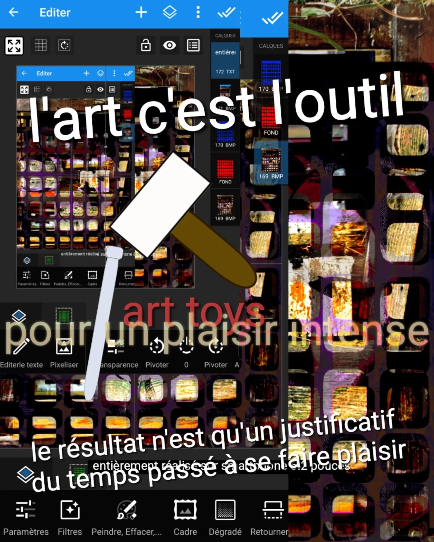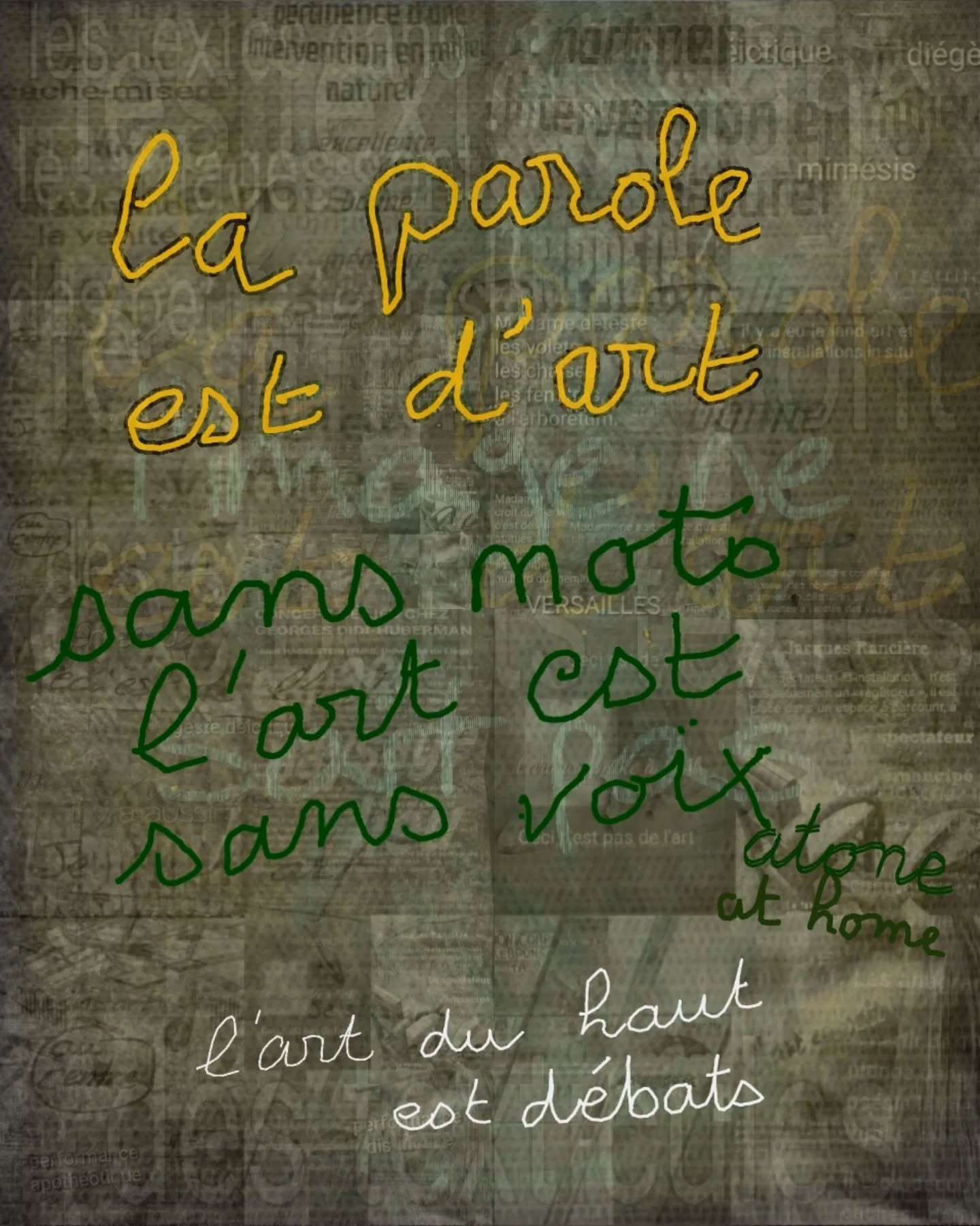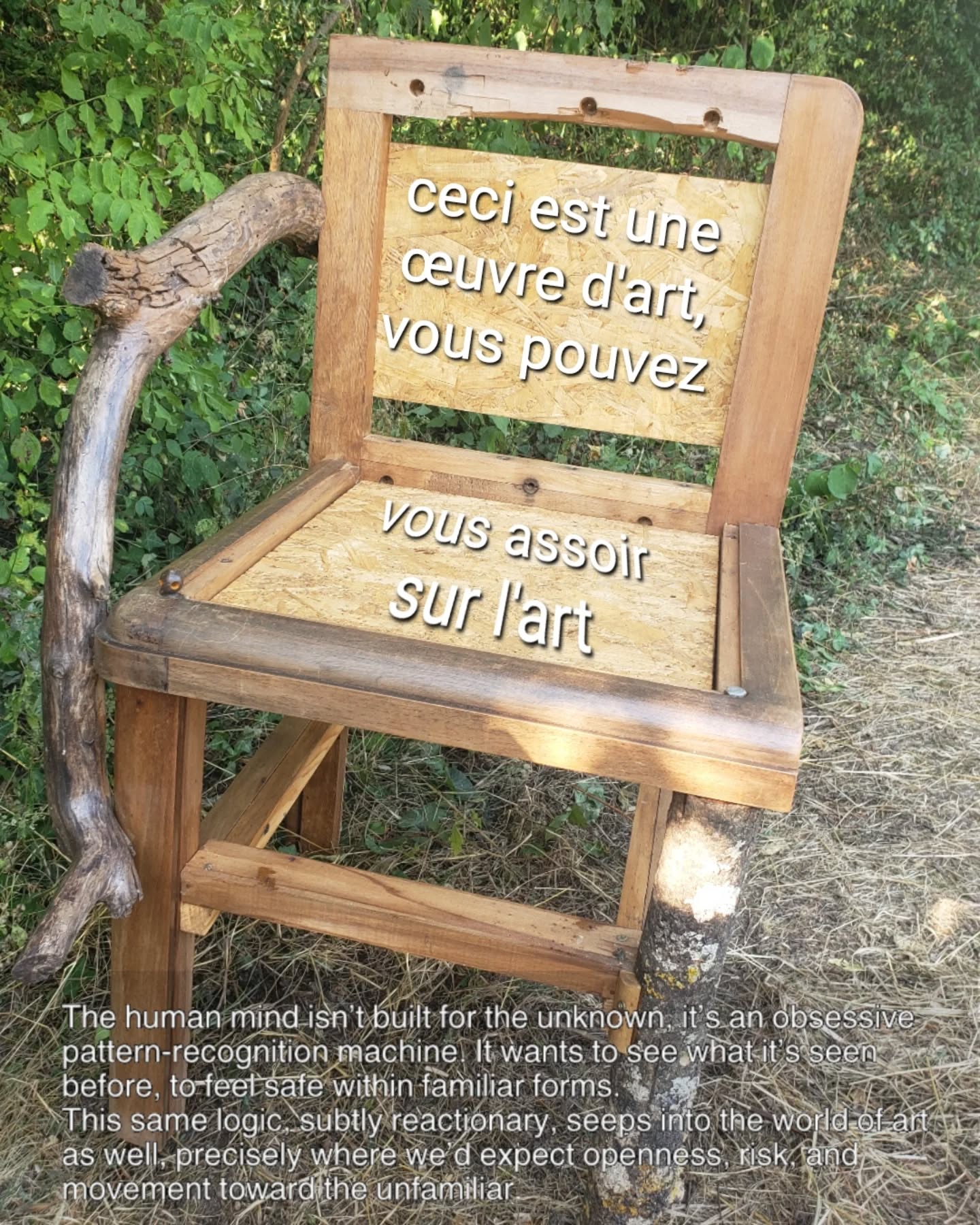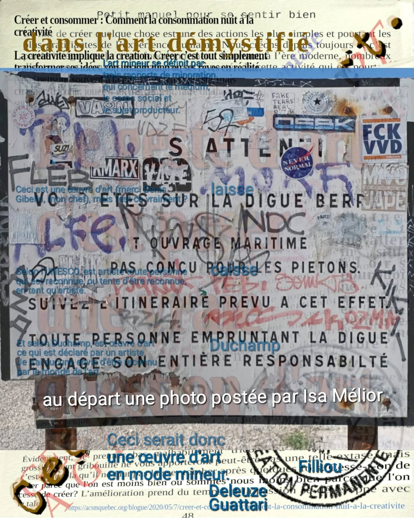 L'art aussi sait faire danser la table. Il y a les marchandises, les marchandises artistiques, et l'art non marchand. L'art (non marchand) n'a pas besoin de cadre. Un simple adhésif fait l'affaire.