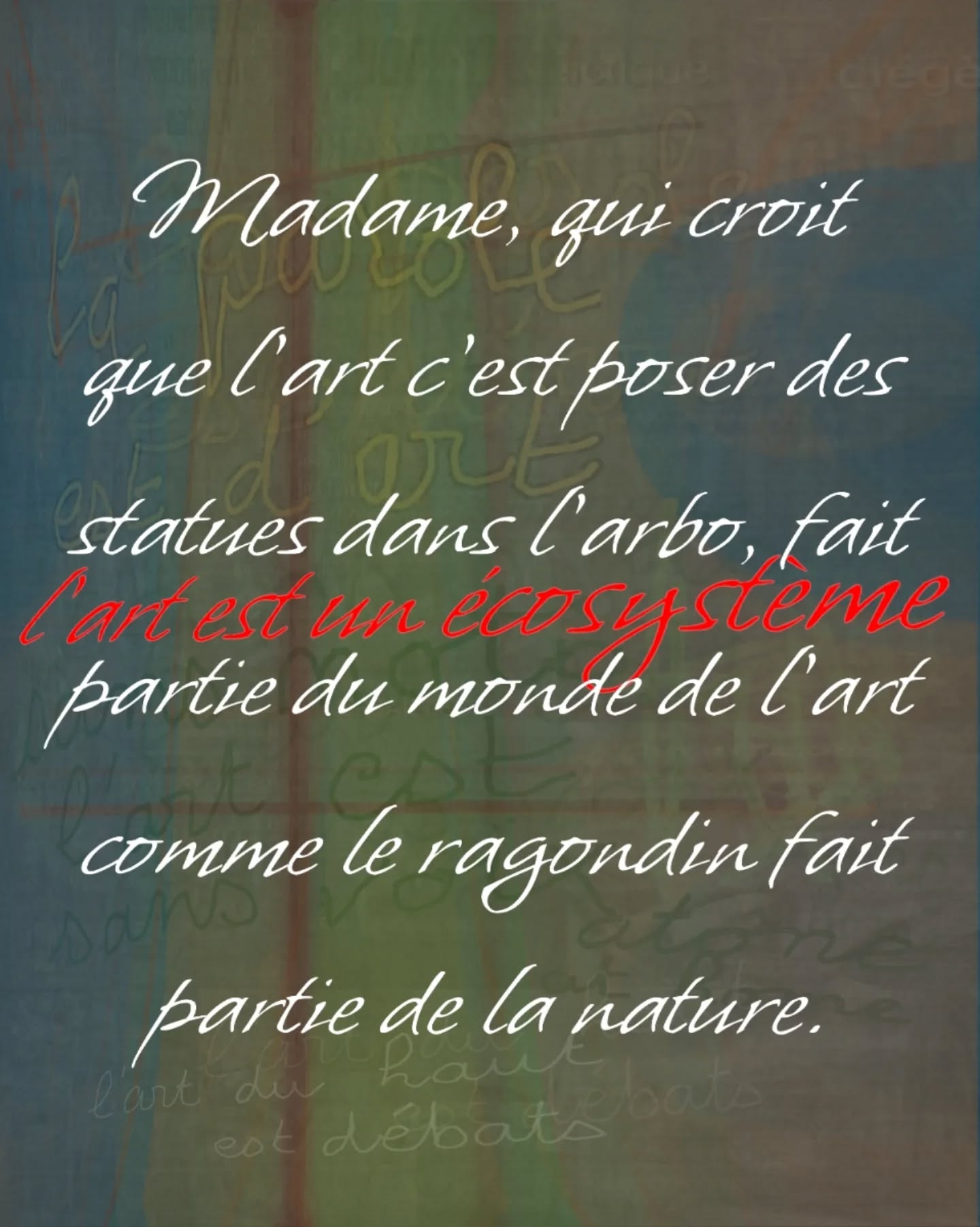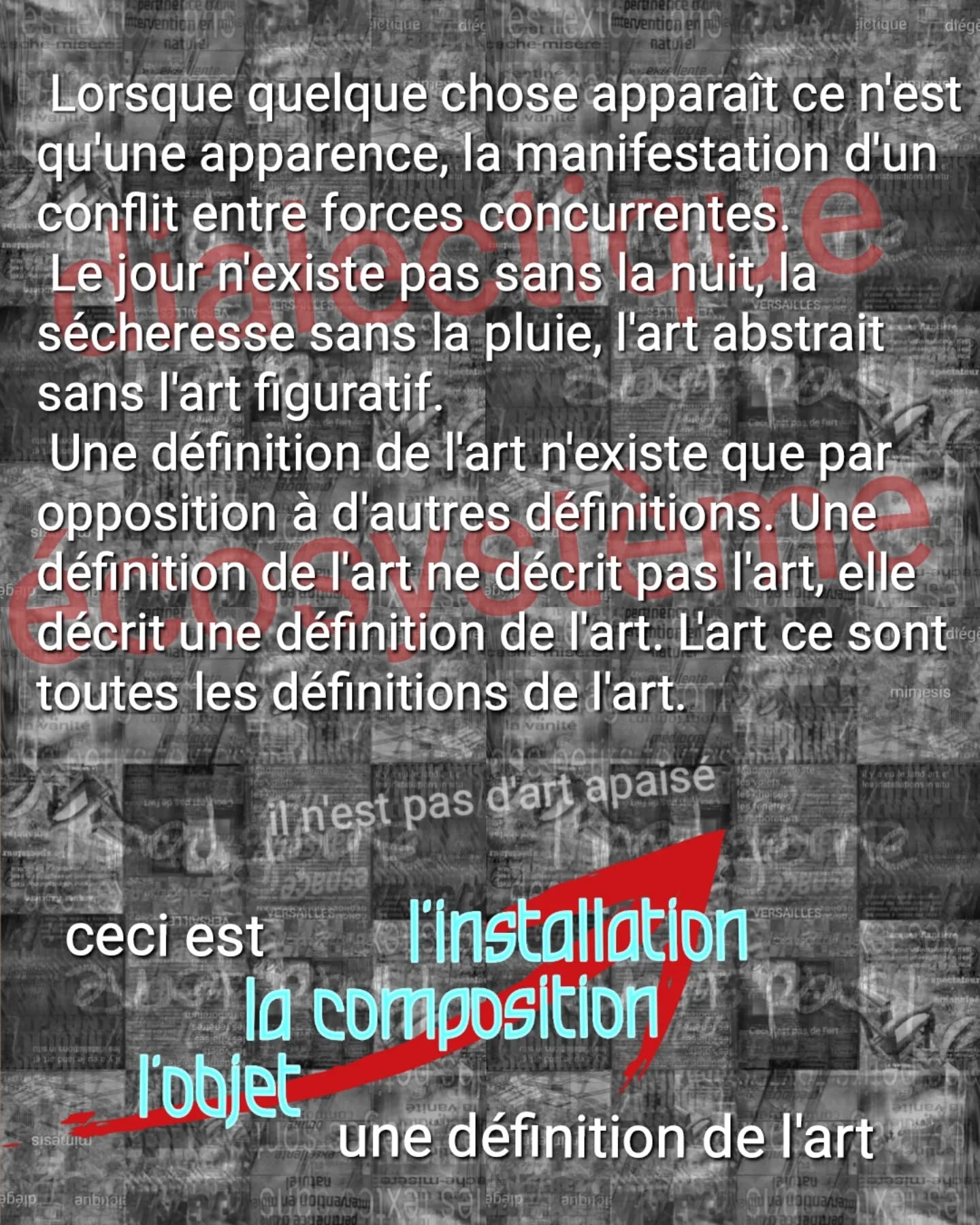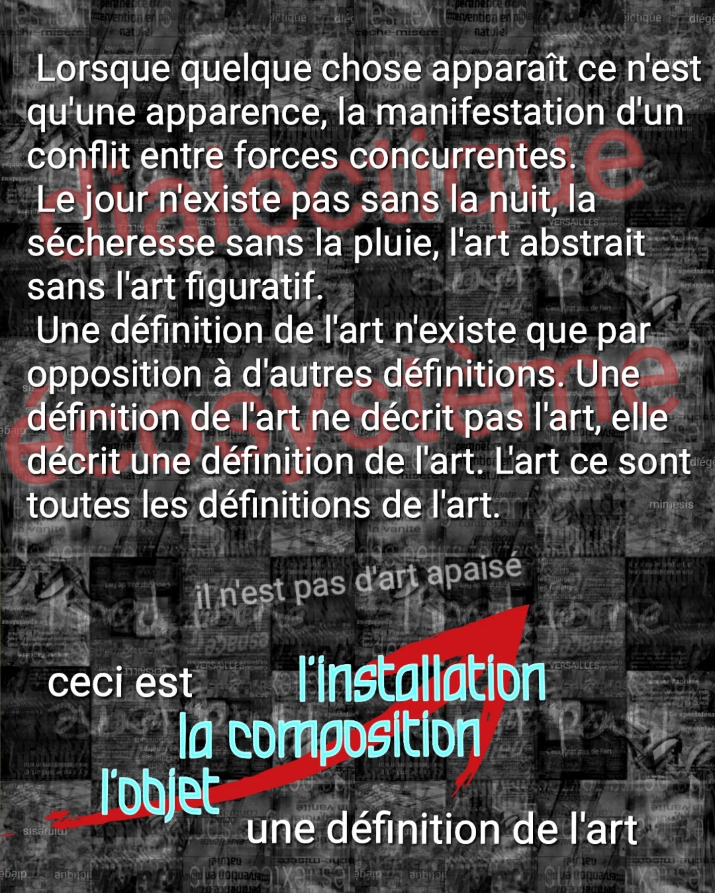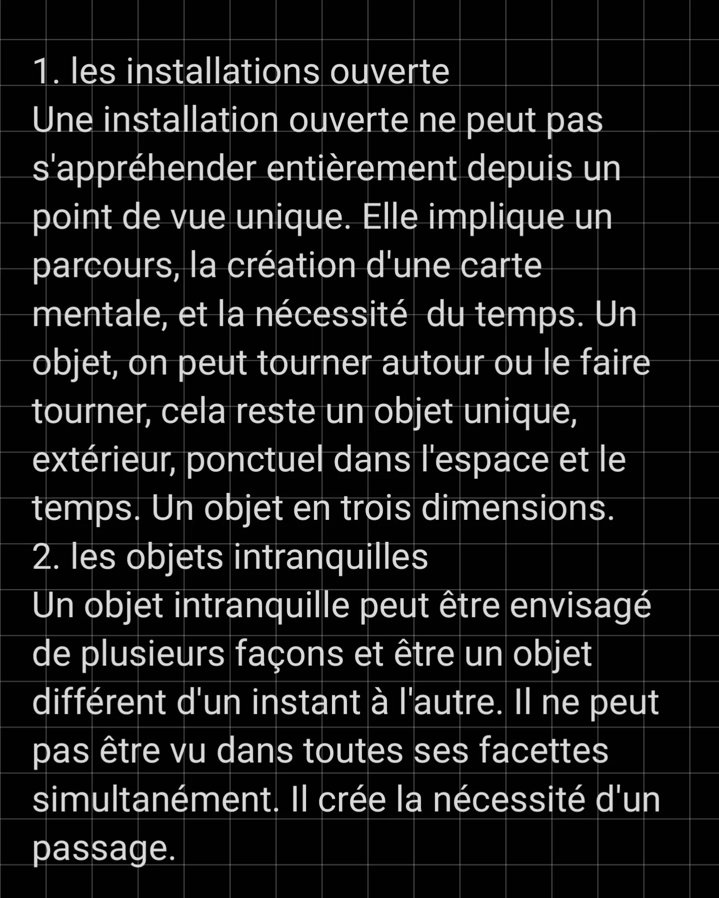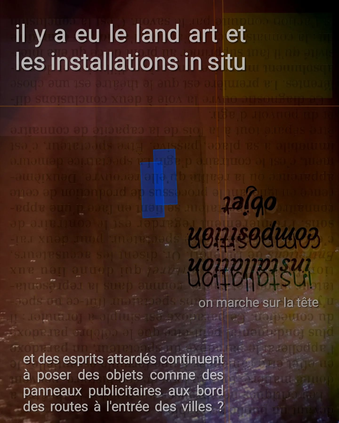 Une installation ce n'est pas poser un objet, ce n'est pas non plus poser une peinture.