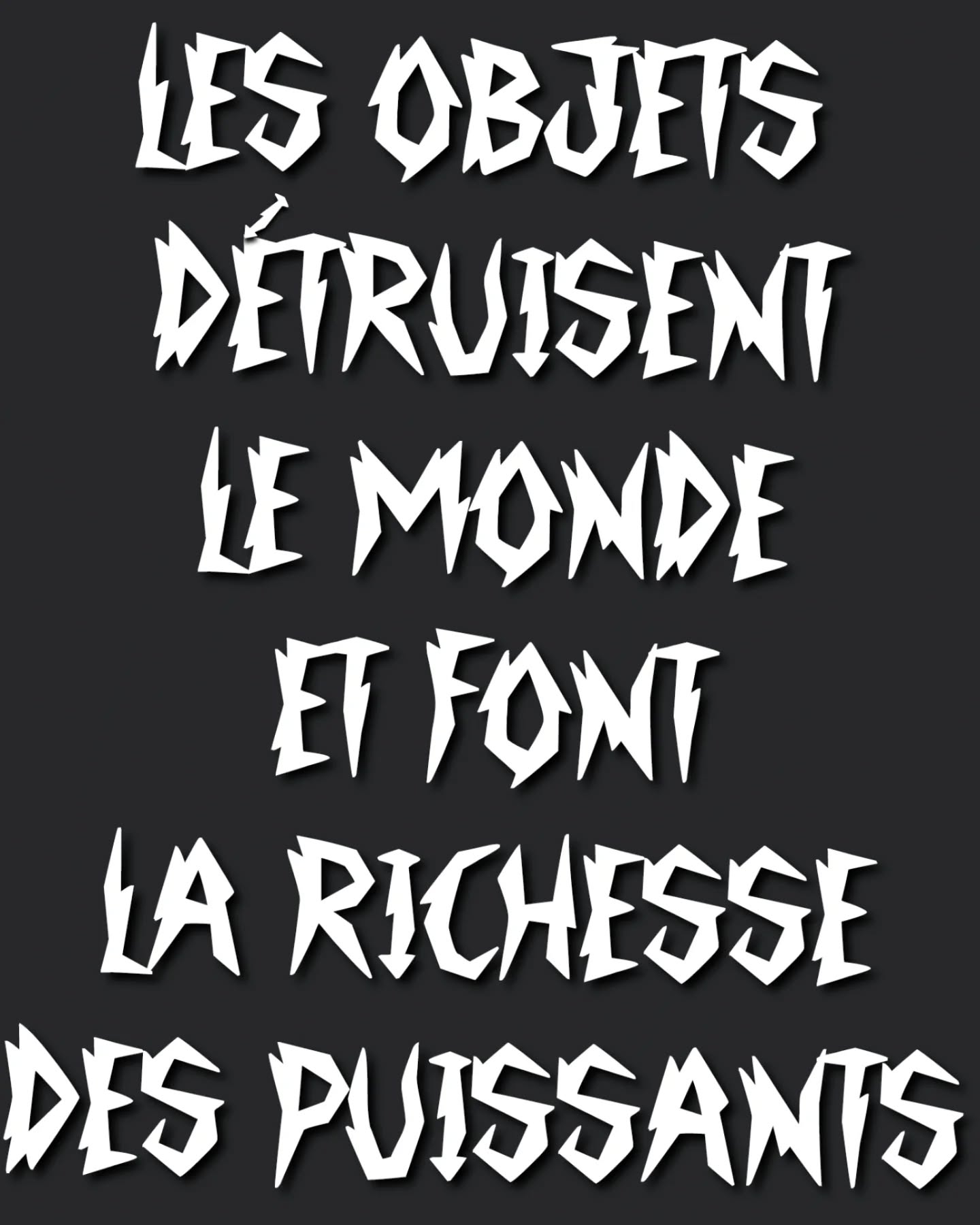 « La forme du bois est changée si l’on en fait une table. Néanmoins, la table reste bois, une chose ordinaire et qui tombe sous les sens. Mais dès qu’elle se présente comme marchandise, c’est une tout autre affaire. À la fois saisissable et insaisissable, il ne lui suffit pas de poser ses pieds sur le sol, elle se dresse, pour ainsi dire, sur sa tête de bois en face des autres marchandises et se livre à des caprices plus bizarres que si elle se mettait à danser. » Karl Marx « Si je dis en effet par exemple que je peux à bon droit faire ce que je veux de cette table, je n’entends certes pas que j’ai le droit de faire que cette table mange de l’herbe ! » Spinoza spectre